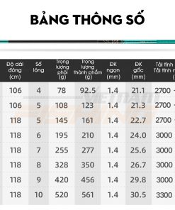 | Độ dài | 360cm, 450cm, 540cm, 630cm, 720cm, 810cm, 900cm, 1000cm |