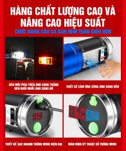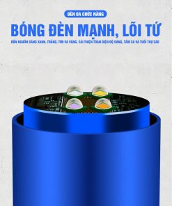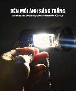 Đèn soi phao xanh được trang bị 4 bóng đèn 4 màu xanh, tím, trắng, vàng và 3 mức sáng tùy theo ý thích của anh em. Bên cạnh đó, phần hông có trang bị thêm đèn soi để anh em vê mồi và thao tác được dễ dàng. Đèn này còn có thêm chức năng đuổi muỗi và có cảm ứng luôn nhé anh em. Đi kèm đèn sẽ có chân và bộ dây